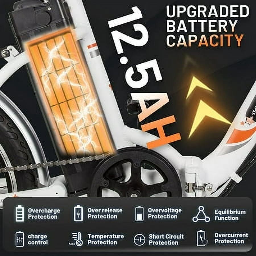 ECOTRIC 20" White Folding Electric Bike Bicycle City Ebike 350W Gear Rear Motor 36V 12.5AH Removable Lithium Battery Alloy Frame Pedal and Throttle Assist LED Display for Children A-E516646