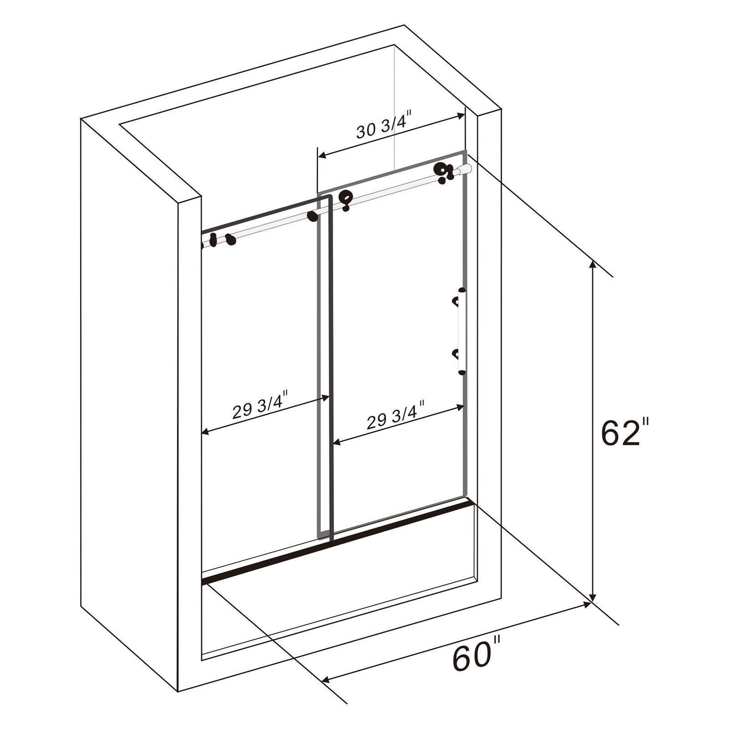 ELEGANT Frameless Bathtub Sliding Doors 60 in. W x 62 in. H