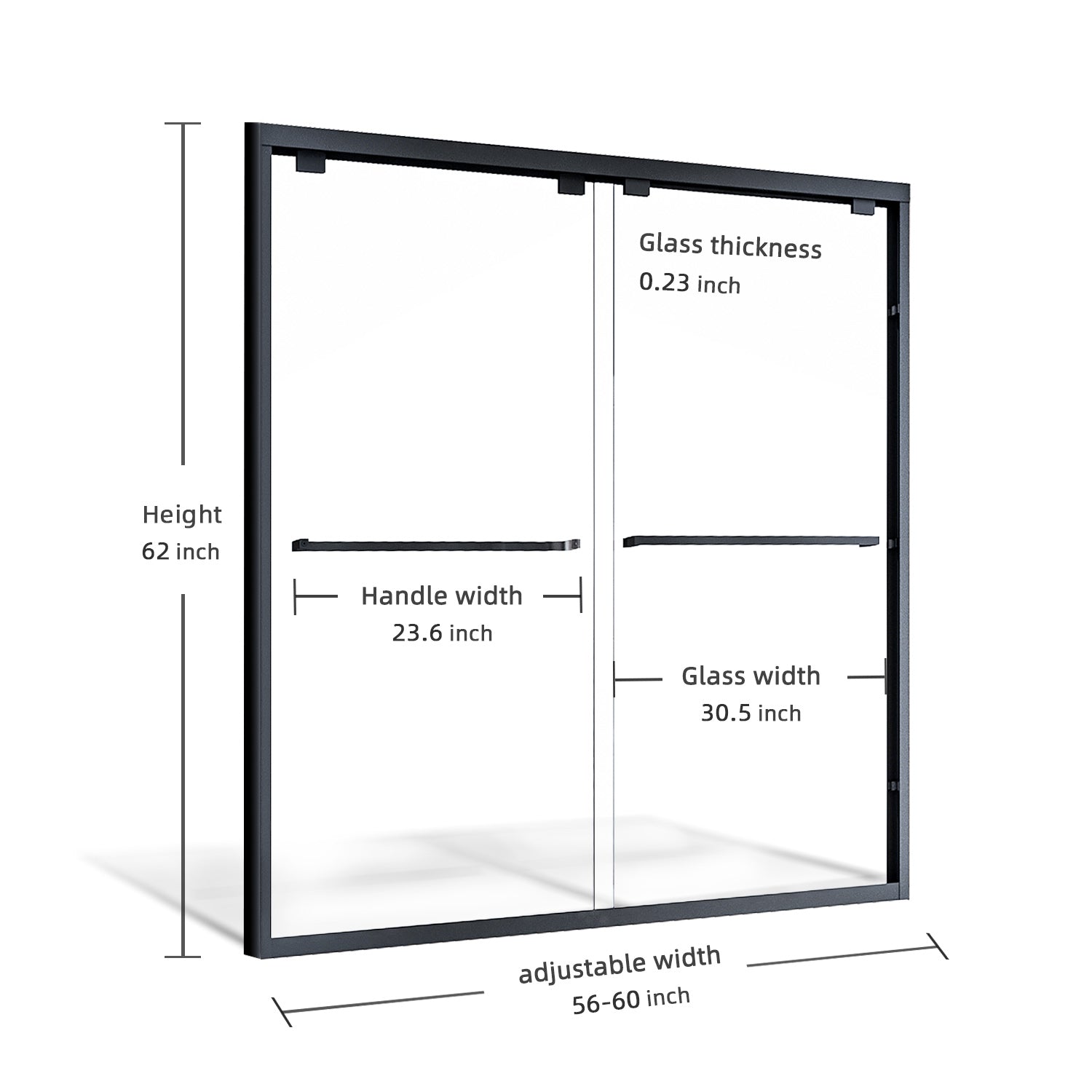 ELEGANT Bathtub Double Sliding Doors 60 in. W x 62 in. H Black Finish
