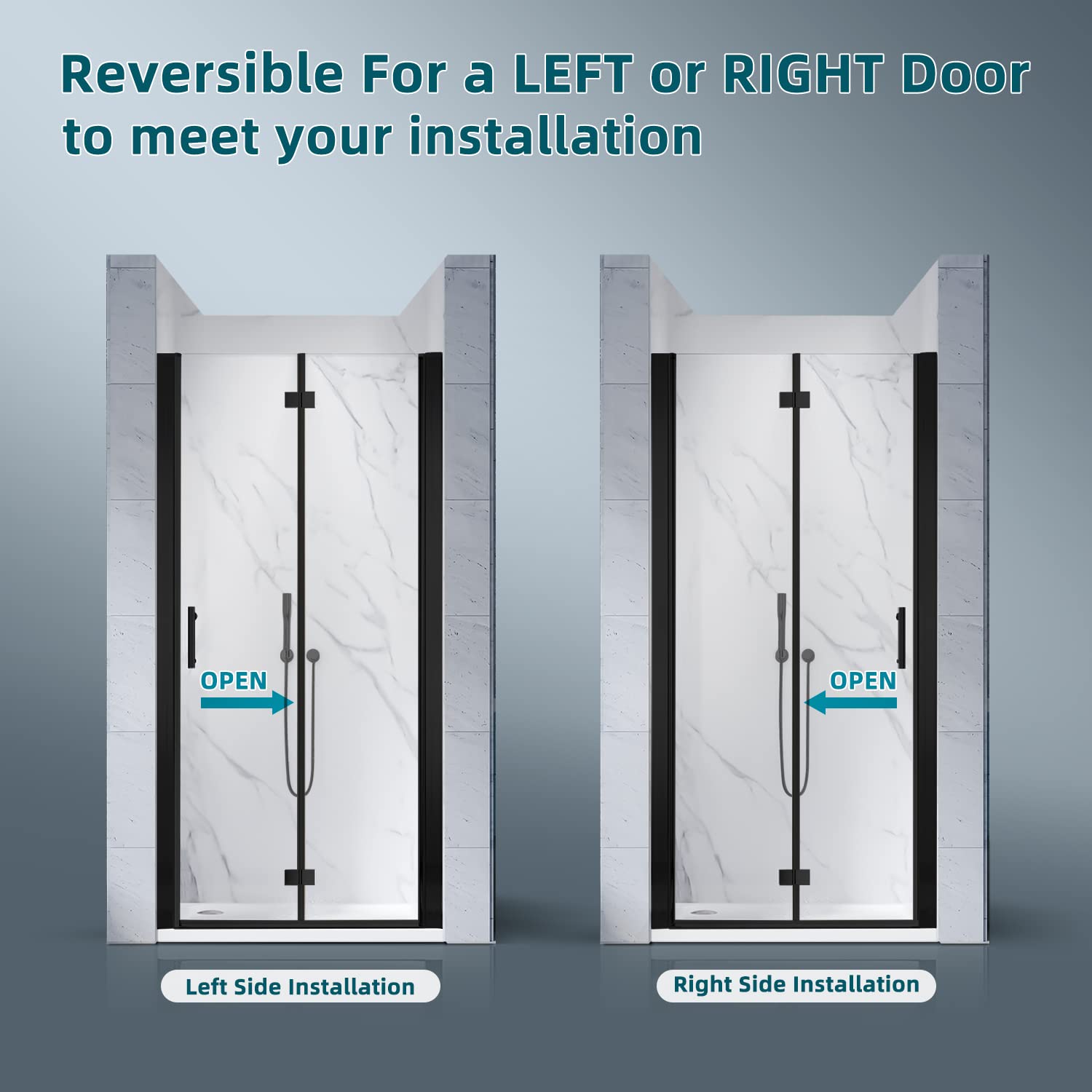 SUNNY SHOWER 1/4 inch Frameless Black Finish Bi-Fold Shower Door