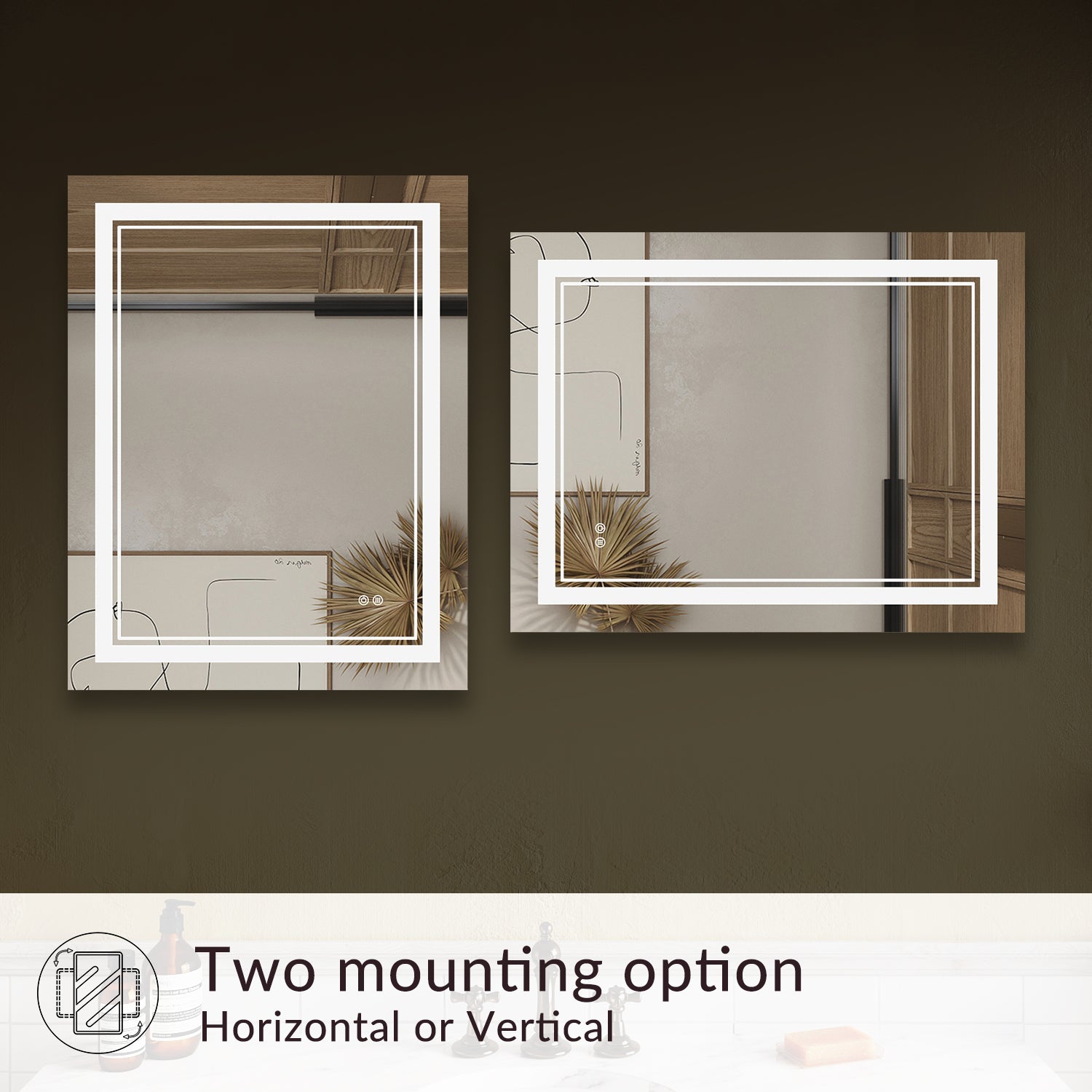 SUNNY SHOWER 28 x 36 in. LED Horizontal Bathroom Mirror With 3 Color Temperature Setting