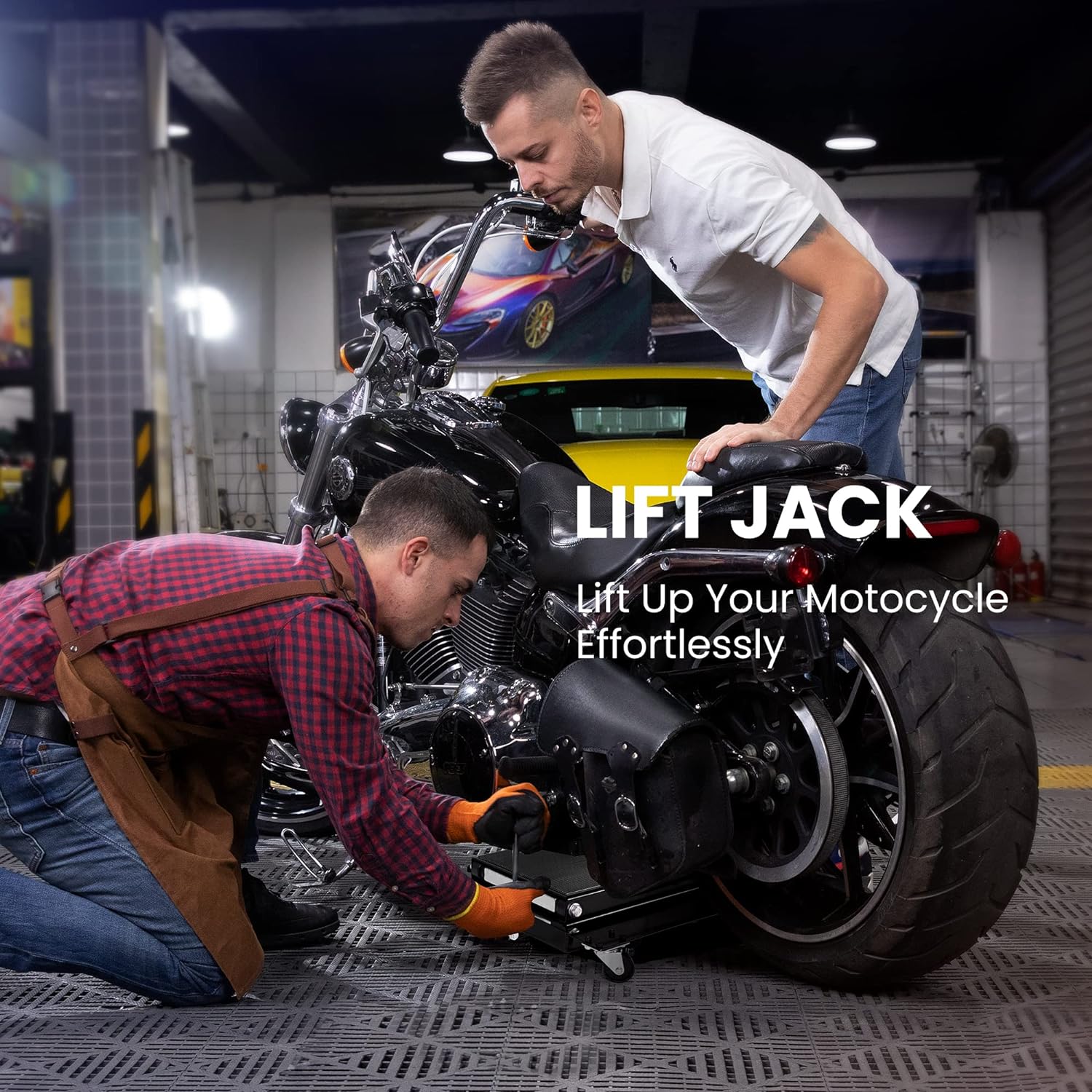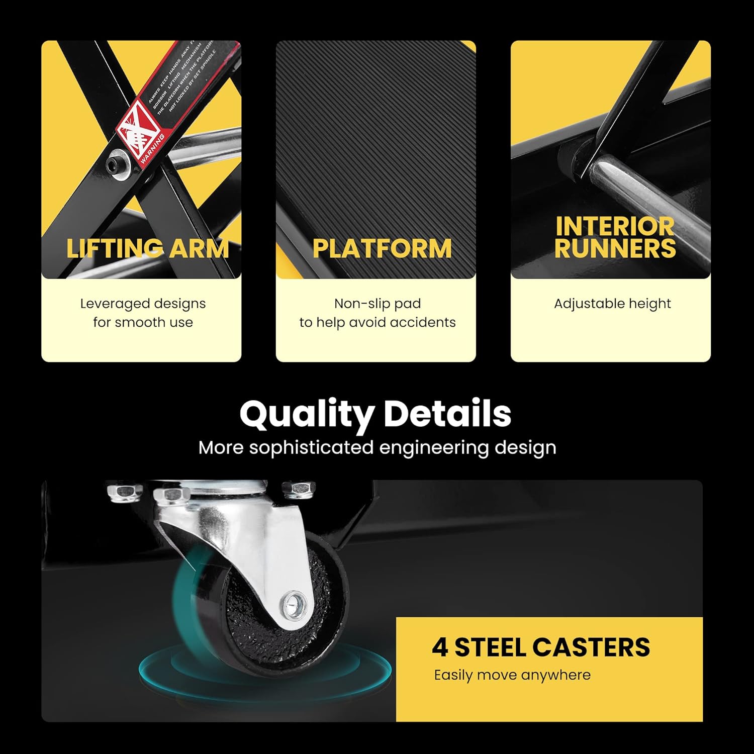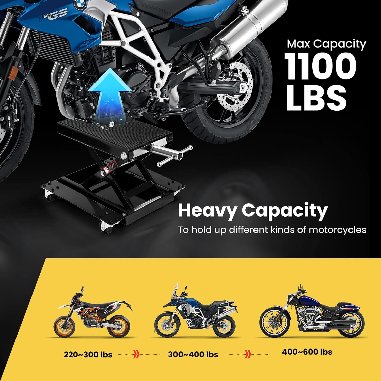 VIVOHOME 1100 Lbs Steel Wide Deck Motorcycle Lift ATV Scissor Lift Jack with Dolly and Hand Crank Bikes Garage Repair Hoist Stand Black